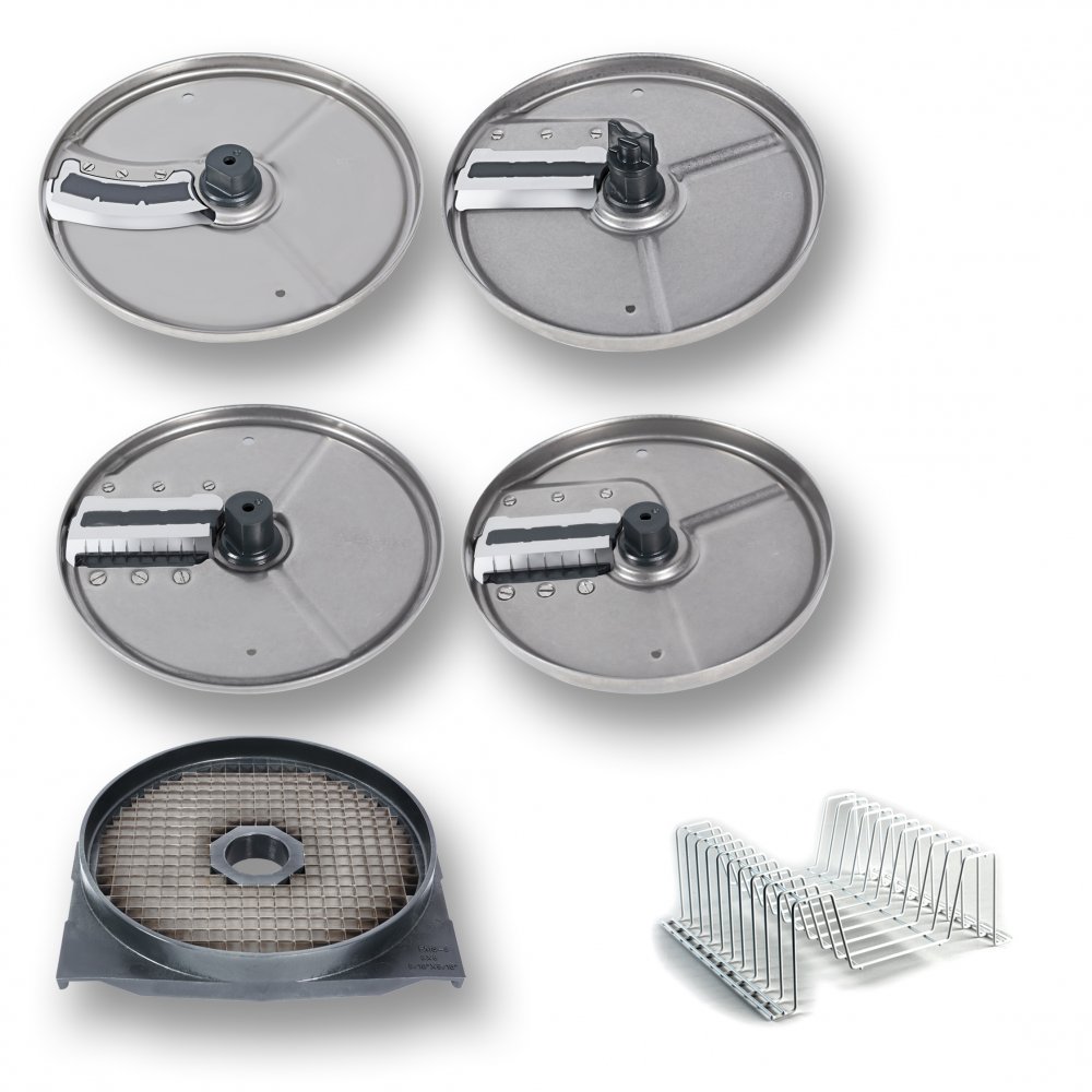 - комплект для нарезки деликатесов: диск для нарезки ломтиками FCES-4x4G + решетка для нарезки кубиками FMS-8;
