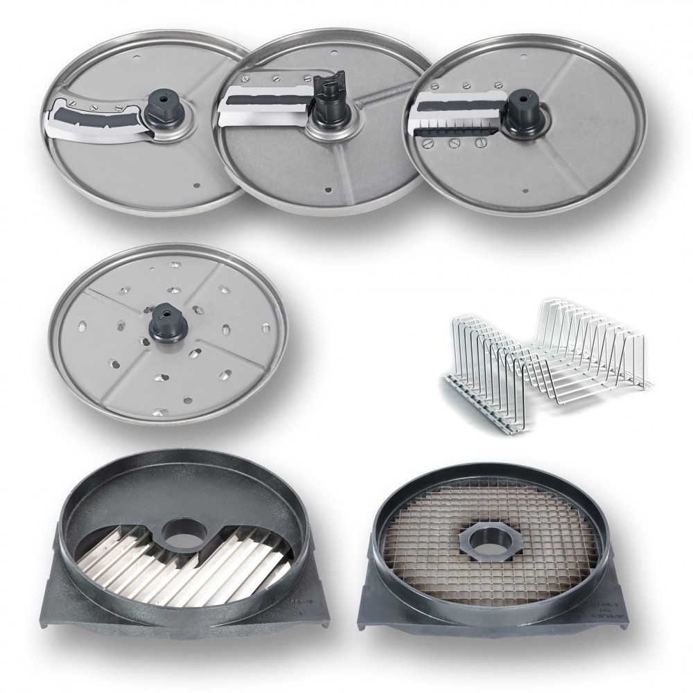 - комплект для нарезки деликатесов: диск для нарезки ломтиками FCES-4x4G + решетка для нарезки кубиками FMS-8;