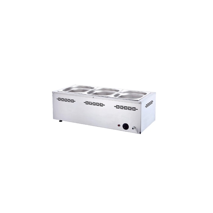 Мармит предназначен для постоянного подогрева первых и вторых блюд и поддержания их оптимальной температуры на предприятиях общественного питания и торговли. Модель оснащена устойчивыми опорами и электромеханической панелью управления. Корпус выполнен из нержавеющей стали.